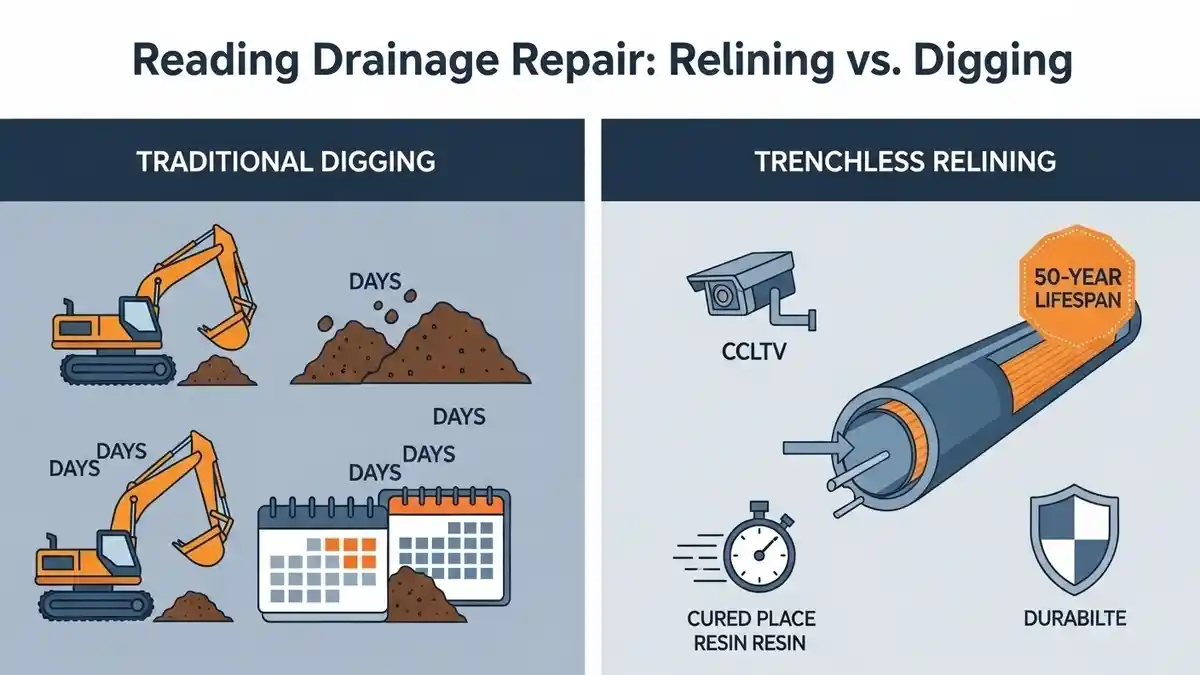 For Hillingdon homeowners and commercial site managers, choosing between Hillingdon Drain Relining vs Digging depends on depth, pipe integrity, and location. Relining is generally 30% to 50% faster and eliminates the need to tear up driveways. Key benefits include a 50-year lifespan, minimal surface disruption near the local town centre, and compliance with local environmental standards. While digging is necessary for collapsed pipes, relining offers a seamless, “pipe-within-a-pipe” solution that resists root ingress and chemical corrosion.