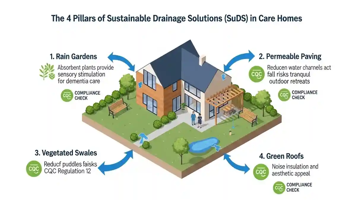 The future of sustainable drainage solutions CQC care home design is the integration of SuDS (Sustainable Drainage Systems). In Hillingdon, Policy EN18 of the Local Plan encourages SuDS to manage surface water runoff, which often plagues the surrounding area.